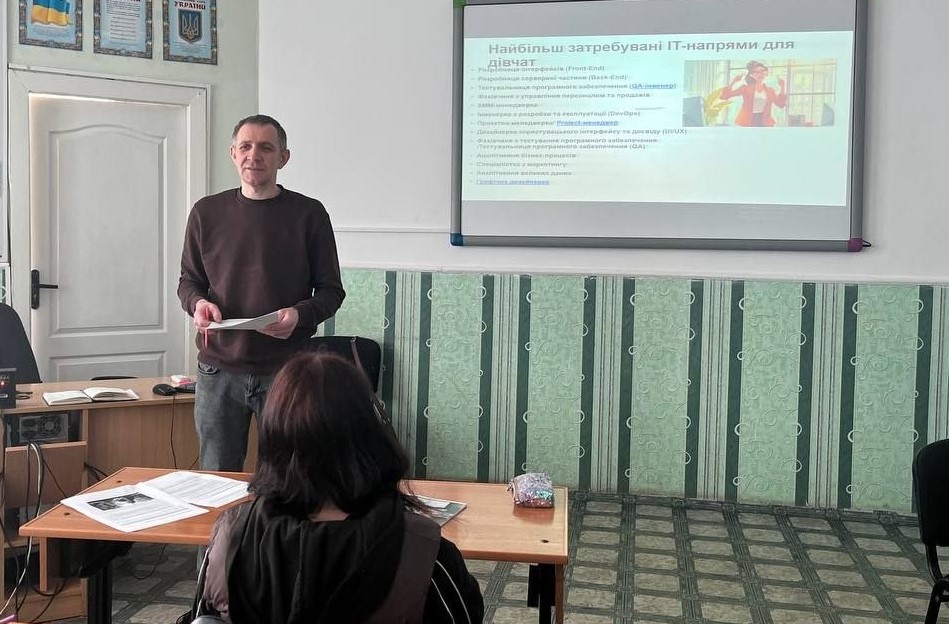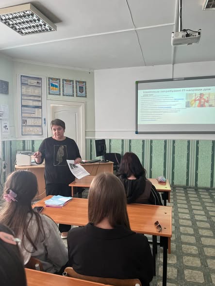 Першим став інтенсив «Дівчата в ІТ – обери свій шлях або дорожня карта здобувачок професії “Оператор з обробки інформації та програмного забезпечення”», який провів майстер виробничого навчання Володимир Калиновський. Учасниці ознайомилися з можливостями професії, перспективами працевлаштування, необхідними компетентностями та кроками для побудови успішної кар’єри в ІТ-сфері.