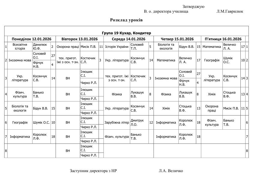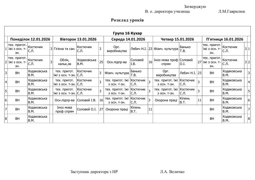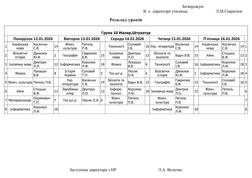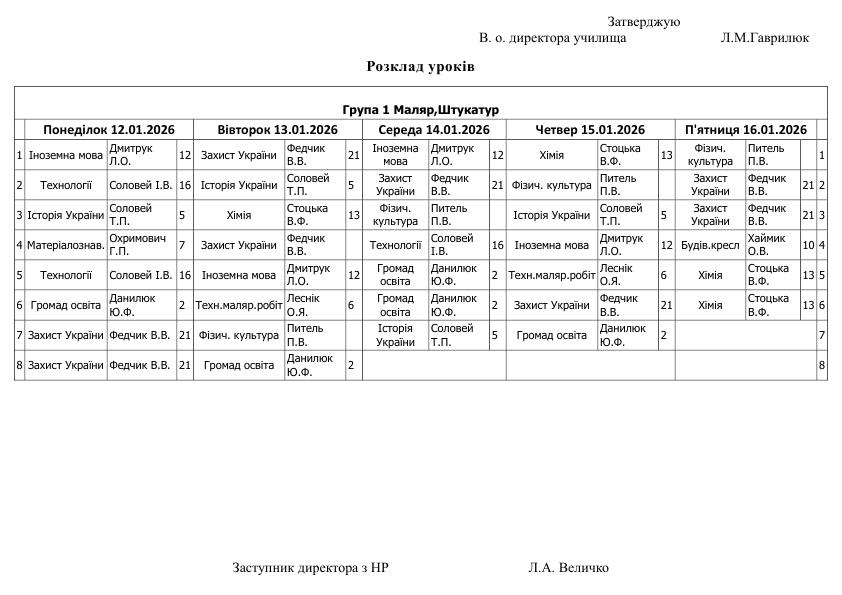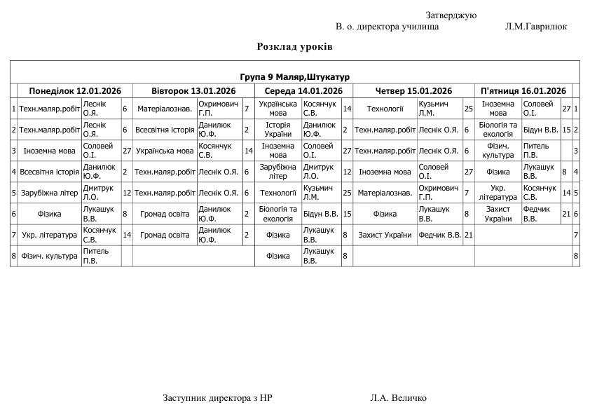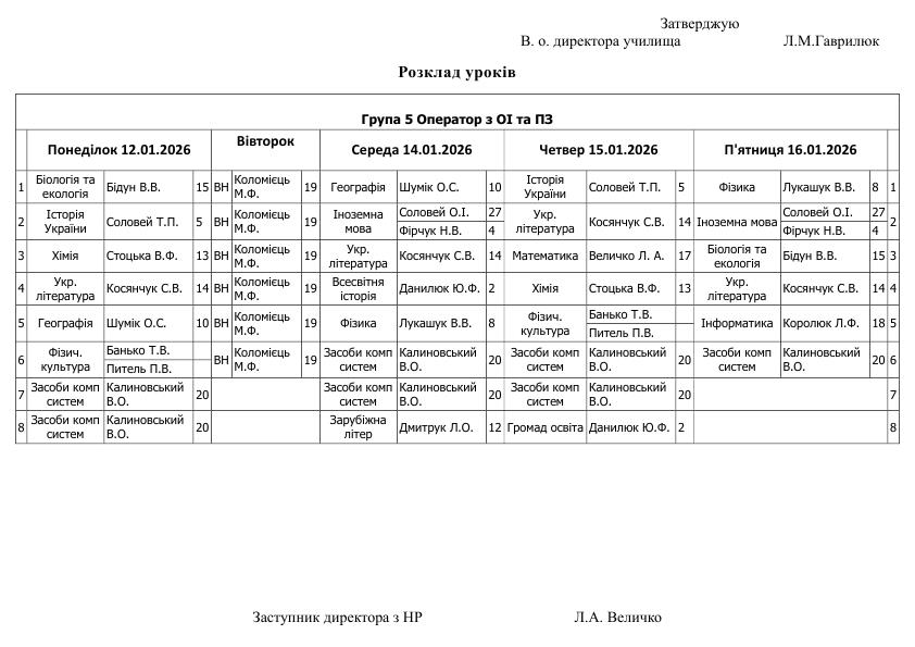 З 12.01.2026 р. по 16.01.2026 р. – навчання дистанційно.