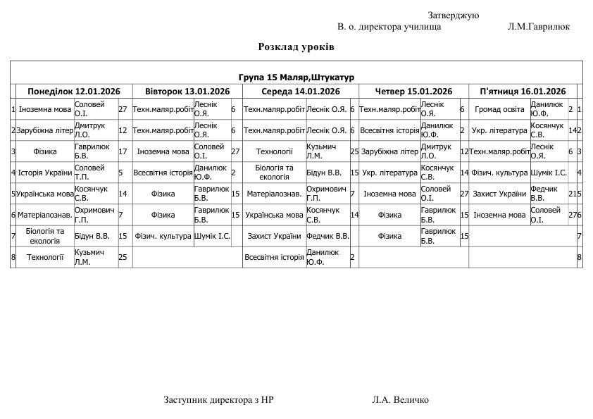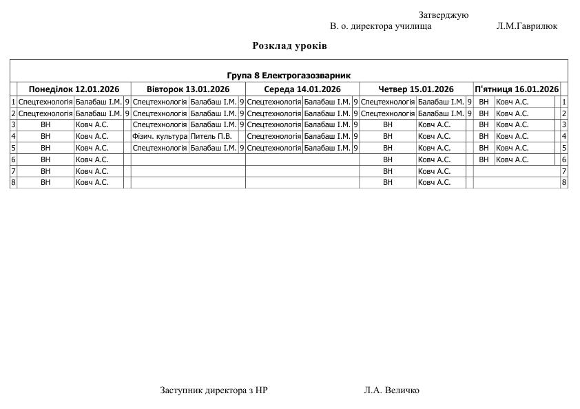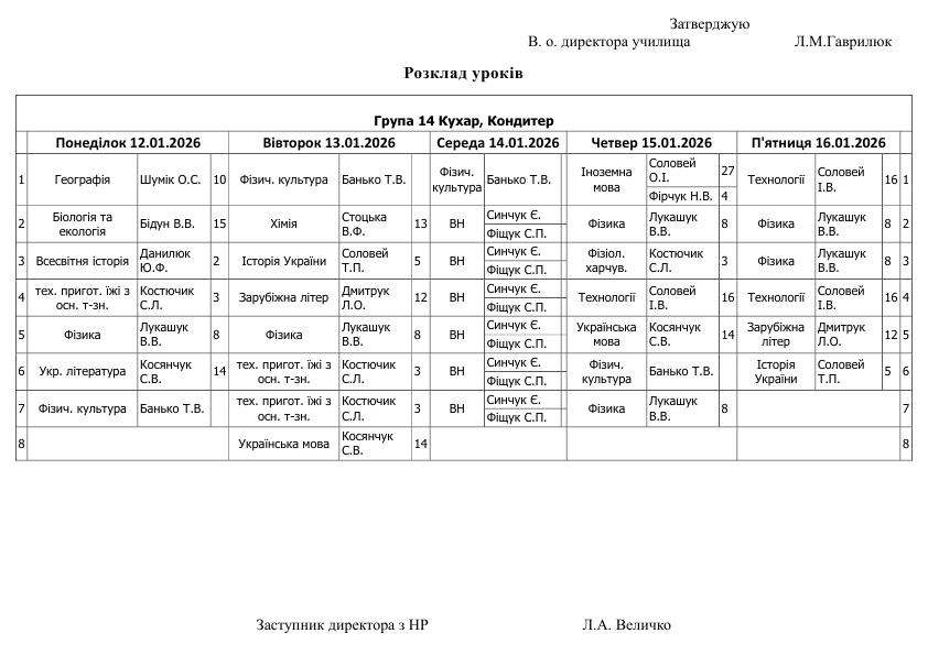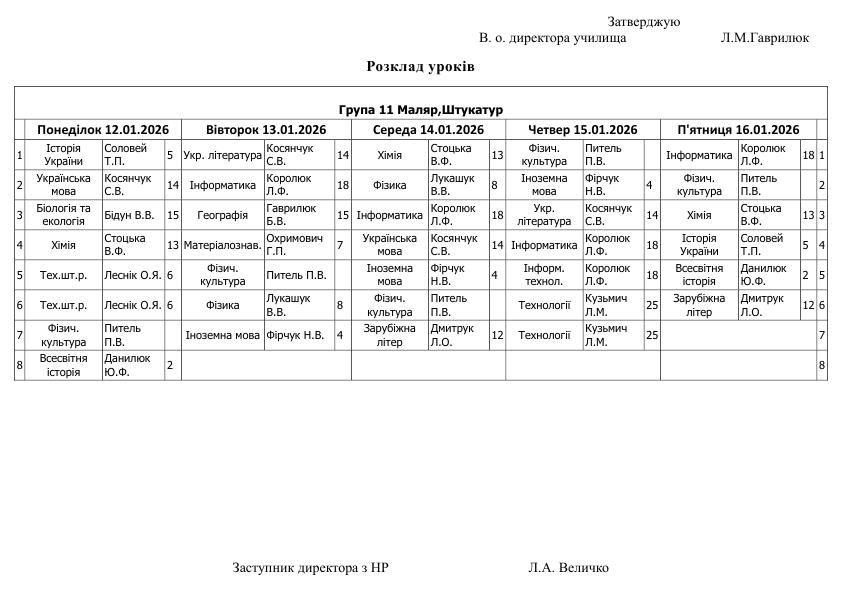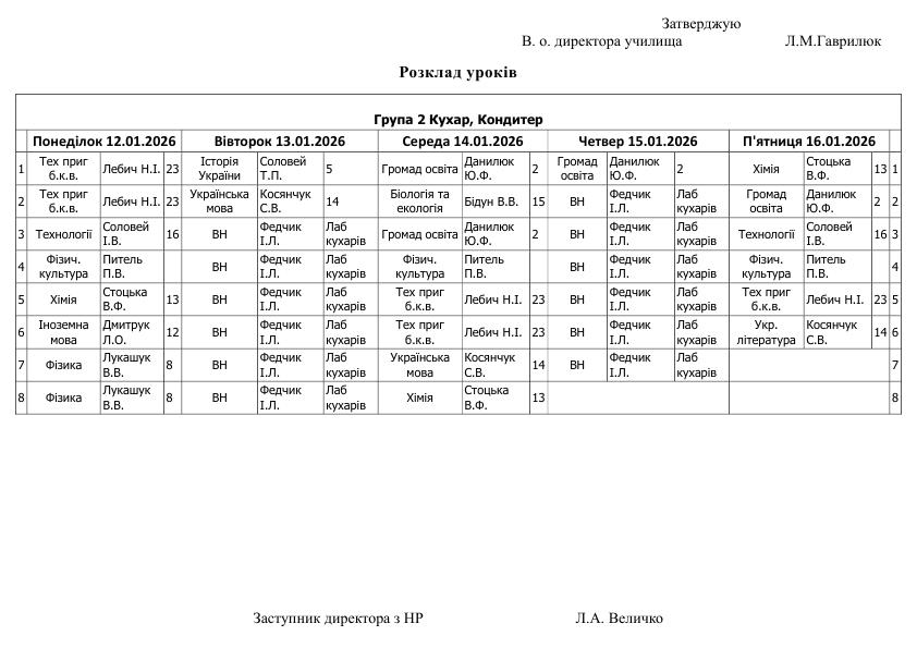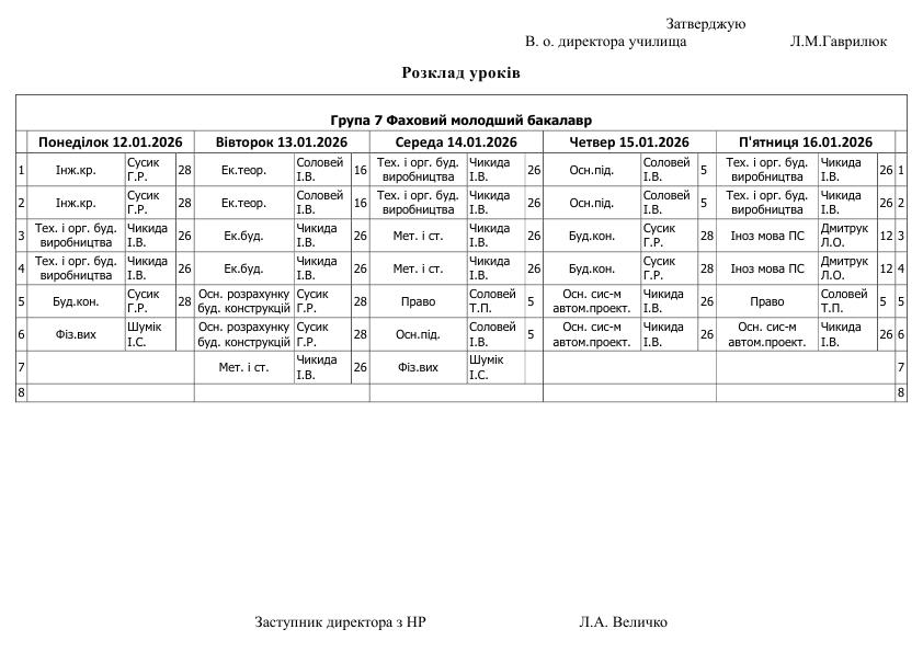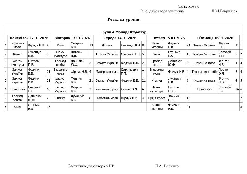 З 12.01.2026 р. по 16.01.2026 р. – навчання дистанційно.